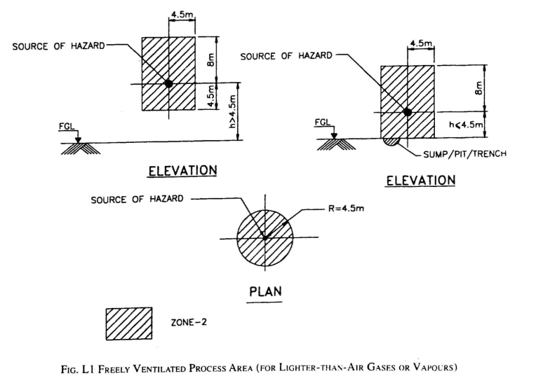 The aim of hazardous area classification is to avoid ignition of those releases that may occur from time to time in the operation of facilities handling flammable liquids and vapors. The approach is to reduce to an acceptable minimum level the probability of coincidence of a flammable atmosphere and an electrical or other source of ignition occurring. In Hazardous Area Classification the extent of the hazardous areas around equipment handling or storing Natural gas, both liquid and vapors is determined in terms of Zone 0, Zone 1, and Zone 2.