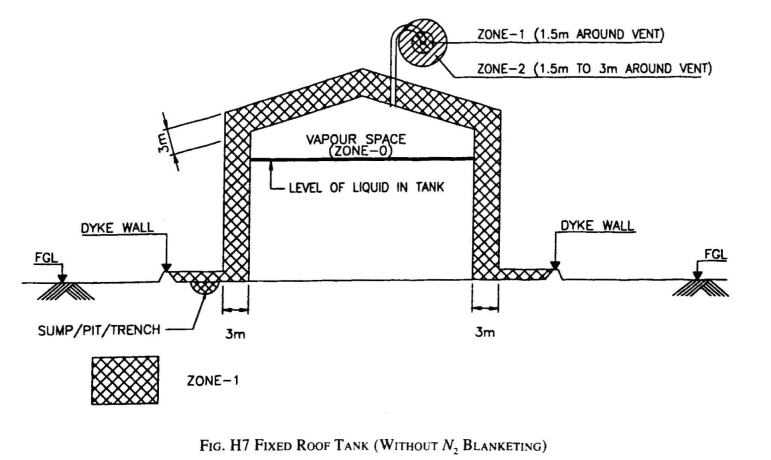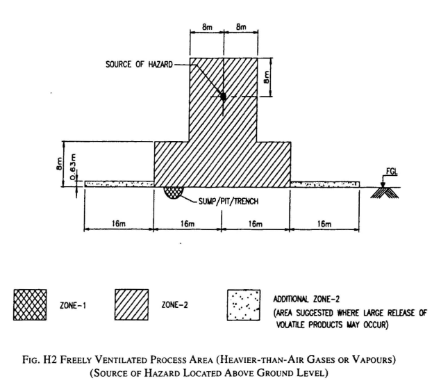 The aim of hazardous area classification is to avoid ignition of those releases that may occur from time to time in the operation of facilities handling flammable liquids and vapors. The approach is to reduce to an acceptable minimum level the probability of coincidence of a flammable atmosphere and an electrical or other source of ignition occurring. In Hazardous Area Classification the extent of the hazardous areas around equipment handling or storing flammable fluids, both liquid and vapors is determined in terms of Zone 0, Zone 1, and Zone 2. The hazardous area classification around the equipment handling flammable/explosive dust is determined in terms of Zone 20, 21, and 22.