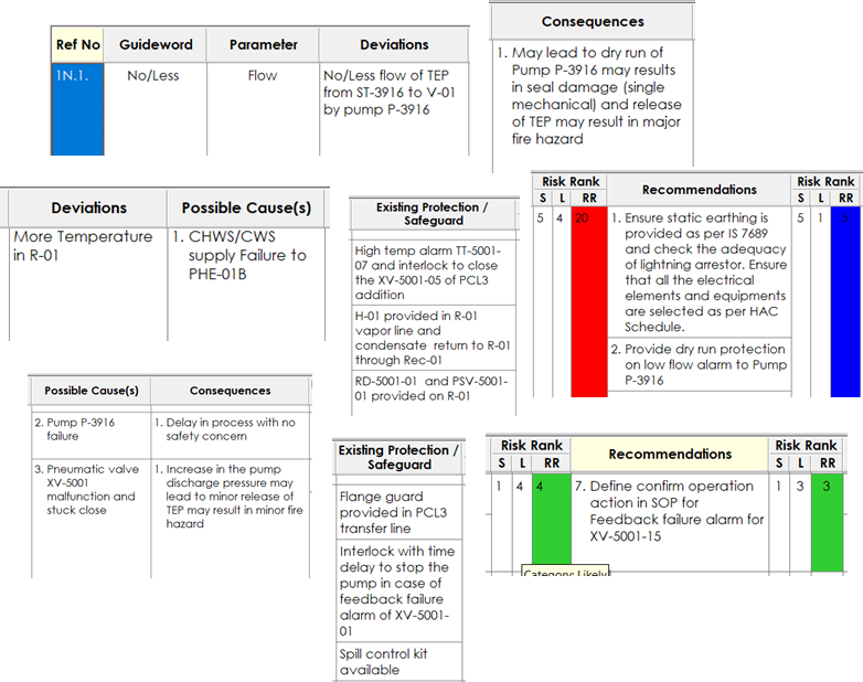 • Detailed description of Nodes, Deviation, Cause, Consequences, Safeguards and Recommendations