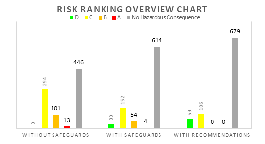 - Risk Ranking was carried out in 3 stages, that is initial potential risk after consequence, mitigated risk after existing safeguards and residual risk after HAZOP recommendations if any.