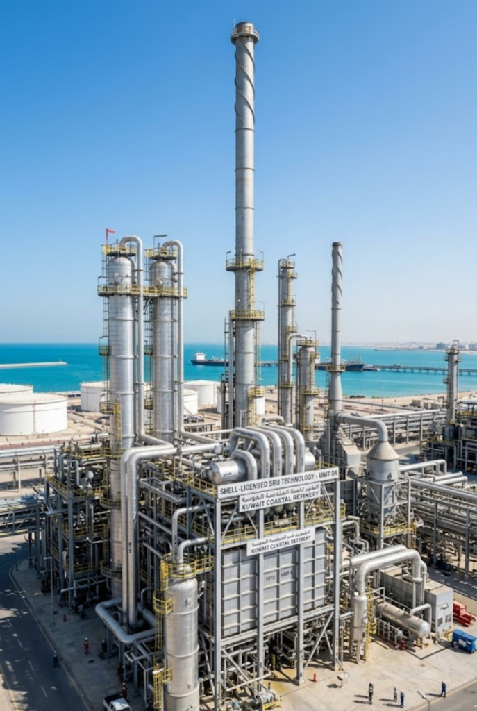 - Sulphur Recovery Unit (SRU) – Converts hydrogen sulfide (H₂S) into elemental sulfur using the Claus process