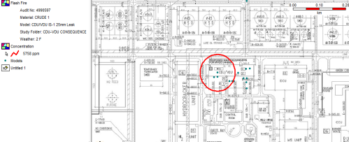The cloud dispersion simulation is carried out to provide the distance (from the leak) at which the concentration of flammable material falls below the Lower Flammability Limit (LFL).