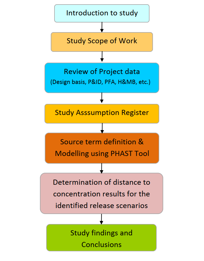 The vent and flare dispersion study was carried out using a structured methodology comprising the following steps:
